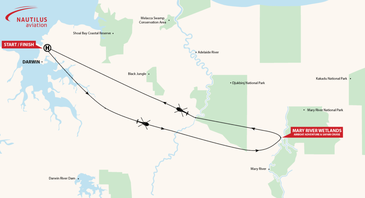 Depart Darwin Airport on demand based on request, availability and airboat times